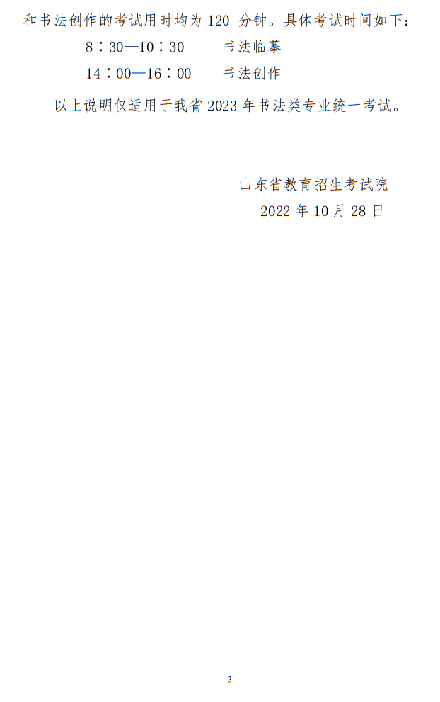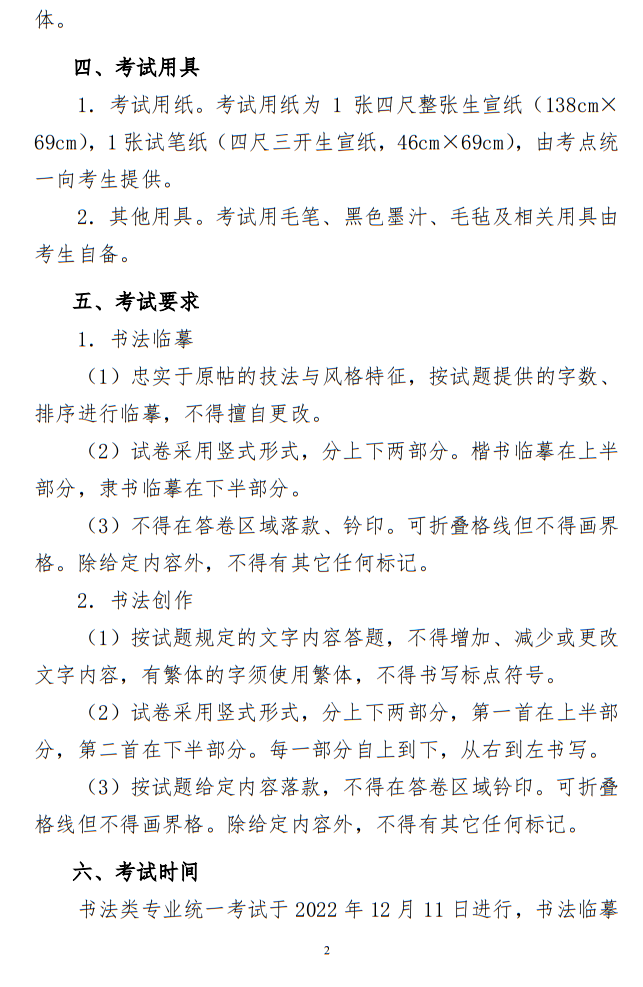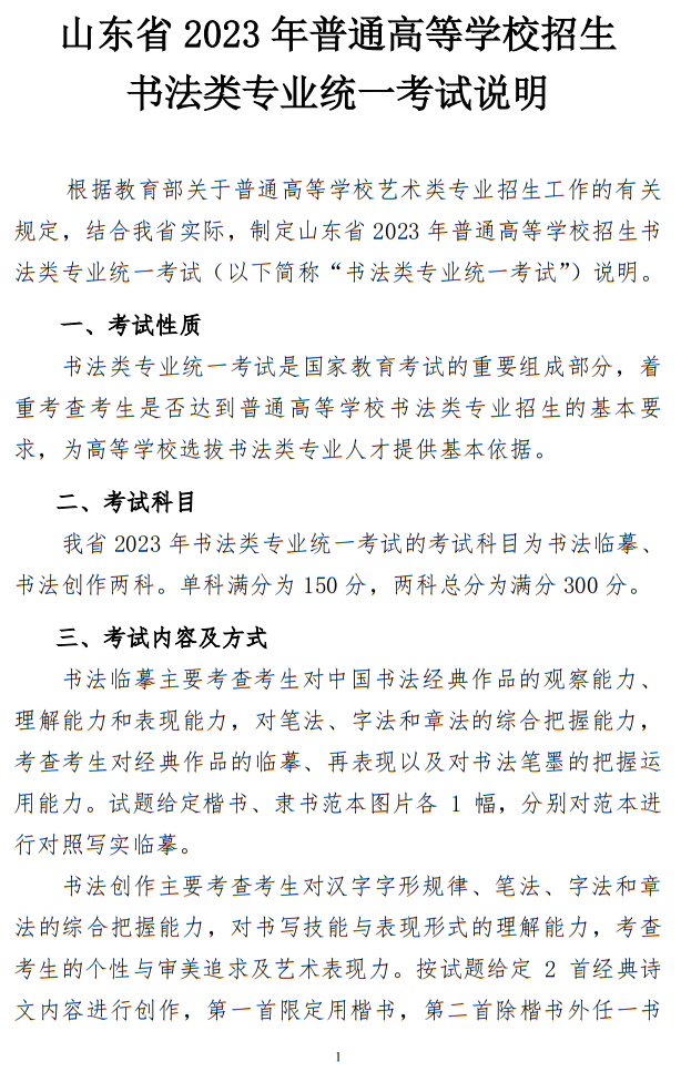 山東省2023年普通高等學校招生書法類專業(yè)統(tǒng)一考試說明 點擊下載