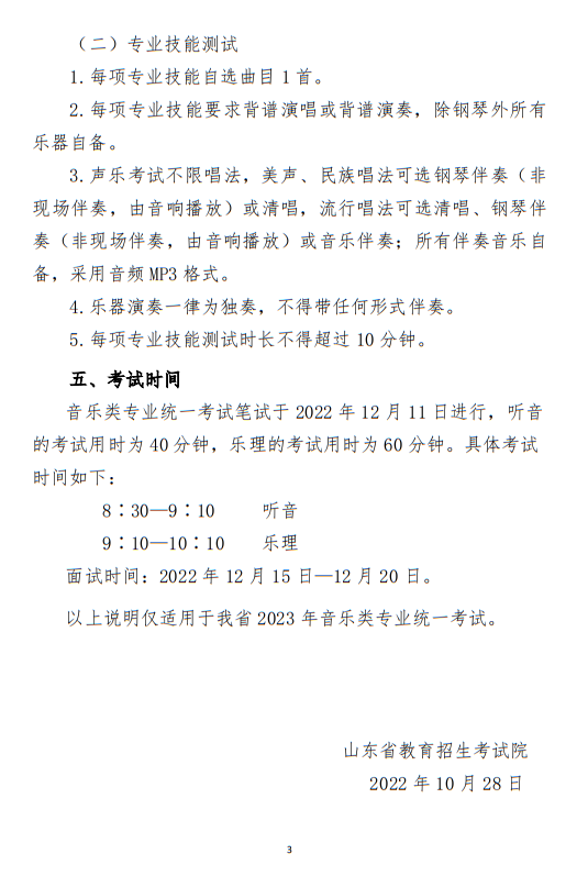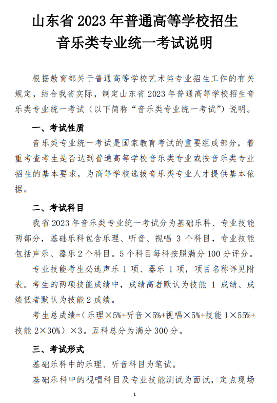 山東省2023年普通高等學(xué)校招生音樂類專業(yè)統(tǒng)一考試說明 點(diǎn)擊下載
