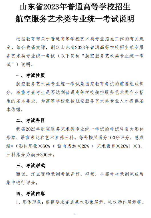山東省2023年普通高等學校招生航空服務藝術類專業(yè)統(tǒng)一考試說明 點擊下載