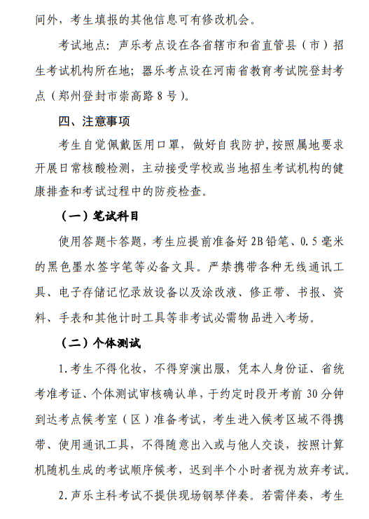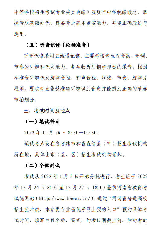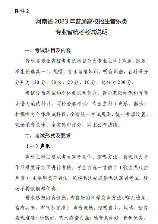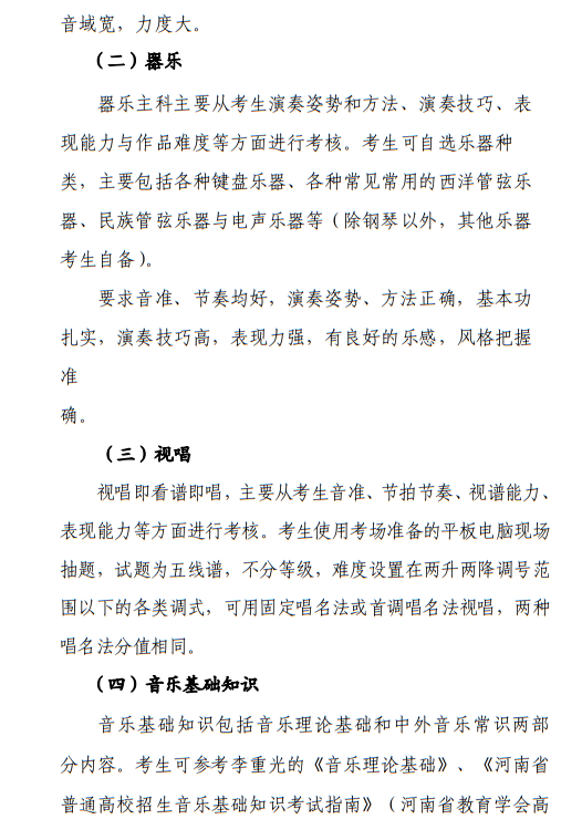 河南省2023年普通高校招生音樂(lè)類專業(yè)省統(tǒng)考考試說(shuō)明 點(diǎn)擊查看