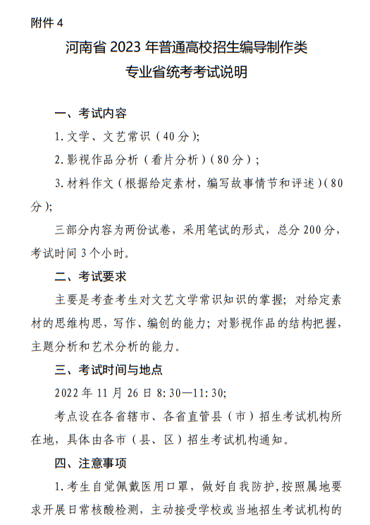 河南省2023年普通高校招生編導(dǎo)制作類專業(yè)省統(tǒng)考考試說明 點擊查看