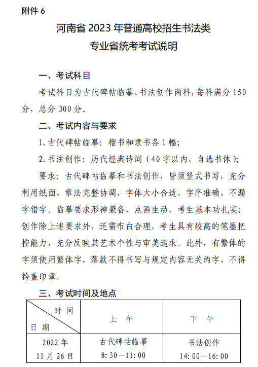 河南省2023年普通高校招生書法類專業(yè)省統(tǒng)考考試說明 點(diǎn)擊查看