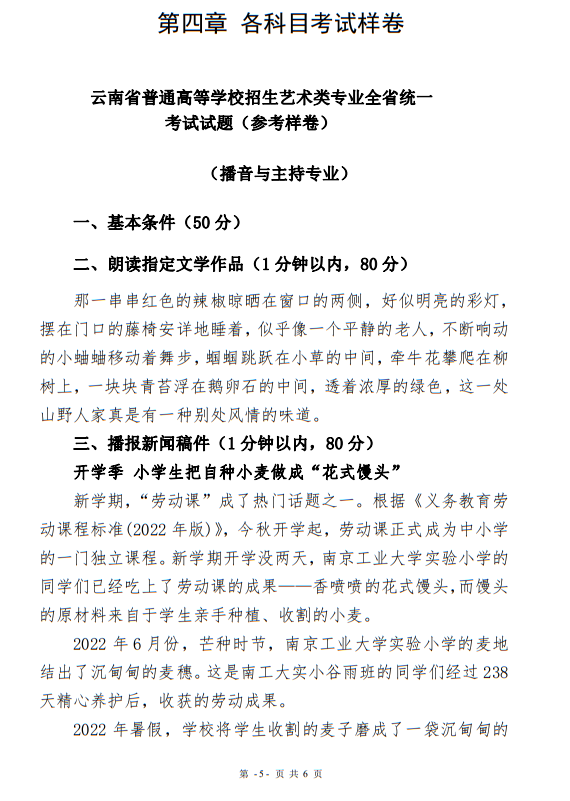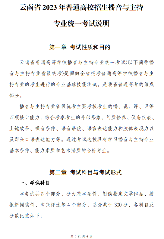 云南省2023年普通高校招生播音與主持專業(yè)統(tǒng)一考試說明(PDF版) 點擊下載