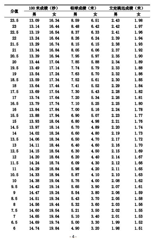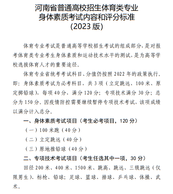 河南省普通高校招生體育類專業(yè)身體素質(zhì)考試內(nèi)容和評分標(biāo)準(zhǔn)(2023 版)點(diǎn)擊下載
