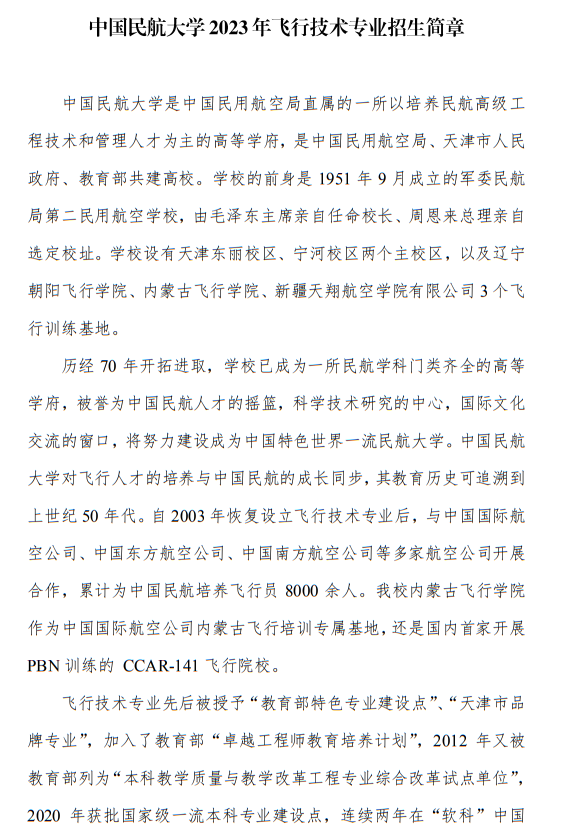 點擊下載:中國民航大學2023年飛行技術(shù)專業(yè)招生簡章.doc