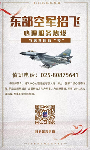 在這樣一個特殊時期,同學們難免會遇到多種事情的困擾,請保持好陽光心態(tài)。如有需求,請撥打招飛心理服務熱線電話:025-80875641(值班時間:周一至周五,上午8:30-11:30,下午15:30-17:30),也可掃描下圖二維碼,留言咨詢。