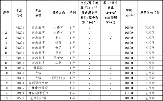(1)在普通類(lèi)專(zhuān)業(yè)批次招生的藝術(shù)類(lèi)專(zhuān)業(yè)