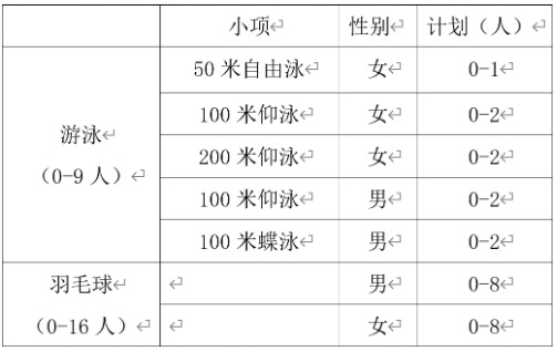 (2)各項(xiàng)目招生計(jì)劃視生源情況可在項(xiàng)目、性別間調(diào)整,本著寧缺毋濫的原則擇優(yōu)錄取。