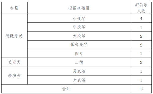 我校2023年高水平藝術(shù)團(tuán)招生計劃為7人,擬認(rèn)定資格考生不超過14人,各招生項(xiàng)目及擬認(rèn)定資格人數(shù)如下: