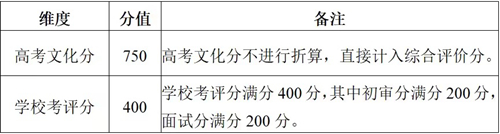 綜合評價分滿分為1150分,具體計算方法為:綜合評價分=高考文化分+學校考評分。