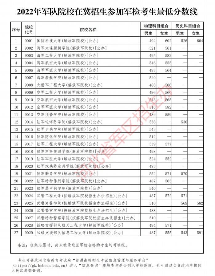 考生可登錄河北省教育考試院“普通高校招生考試信息管理與服務(wù)平臺(tái)”(https://gk.hebeea.edu.cn)進(jìn)入“信息查詢”模塊查詢是否列入軍檢范圍,也可通過負(fù)責(zé)政治考核的人民武裝部查詢。