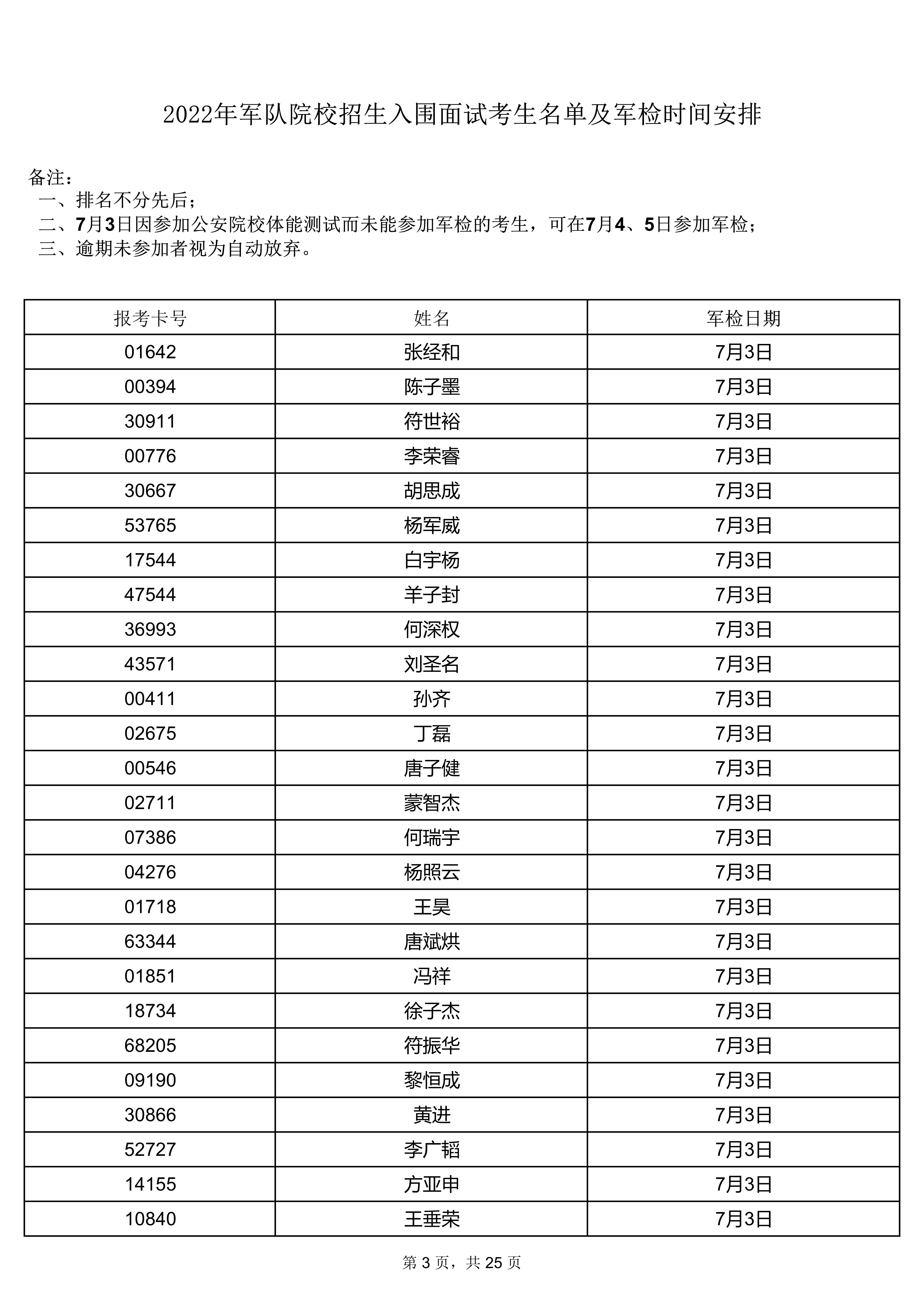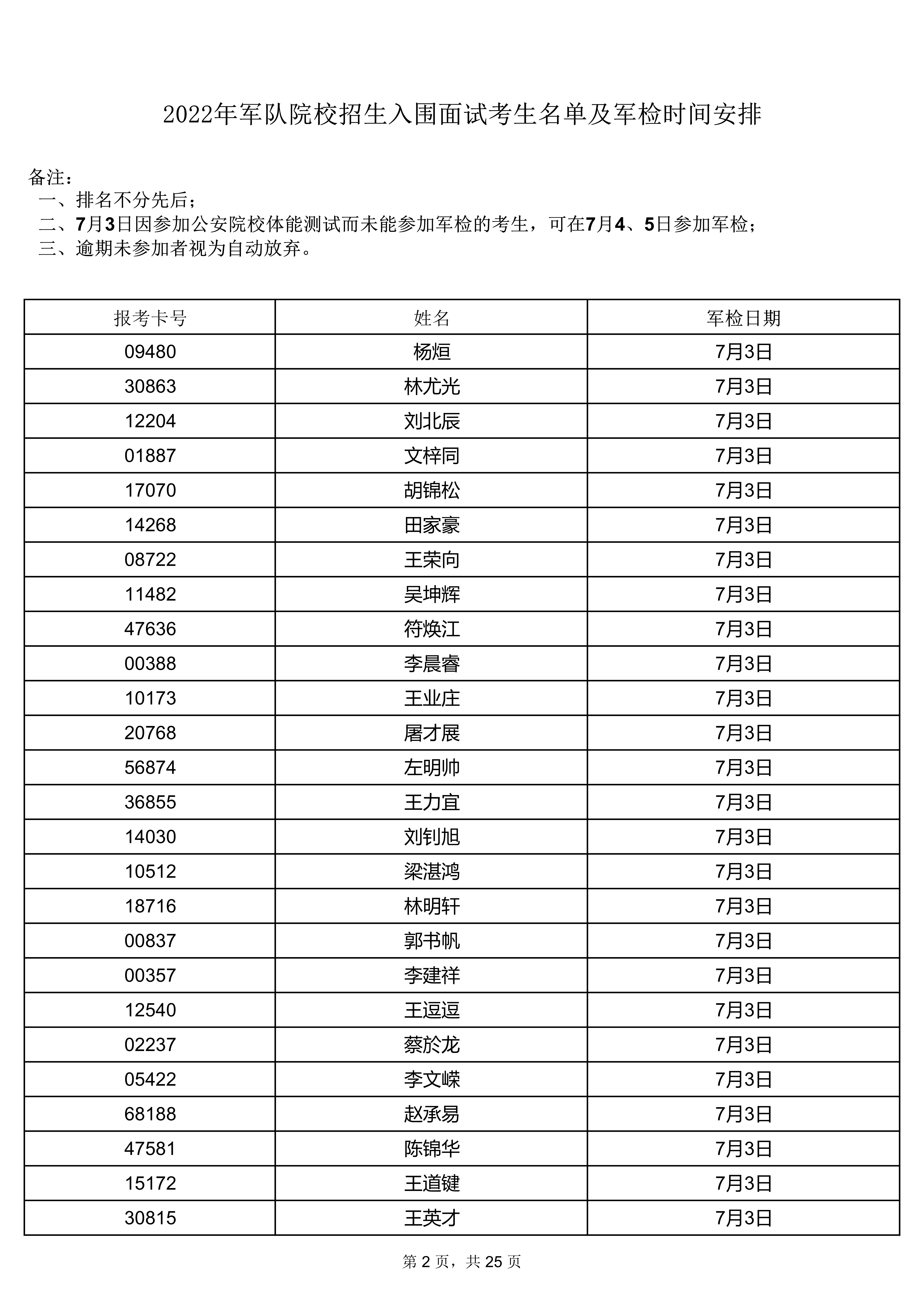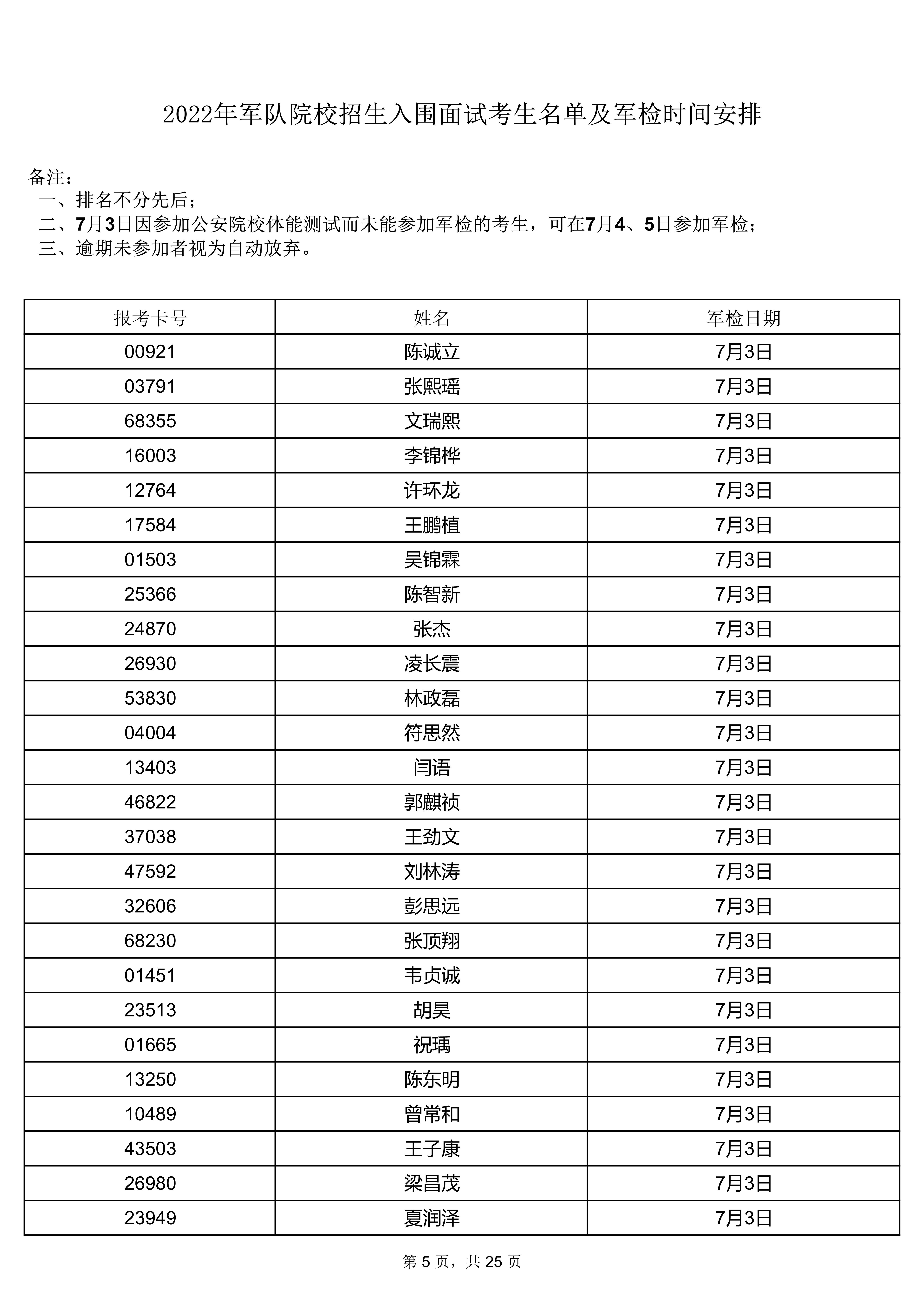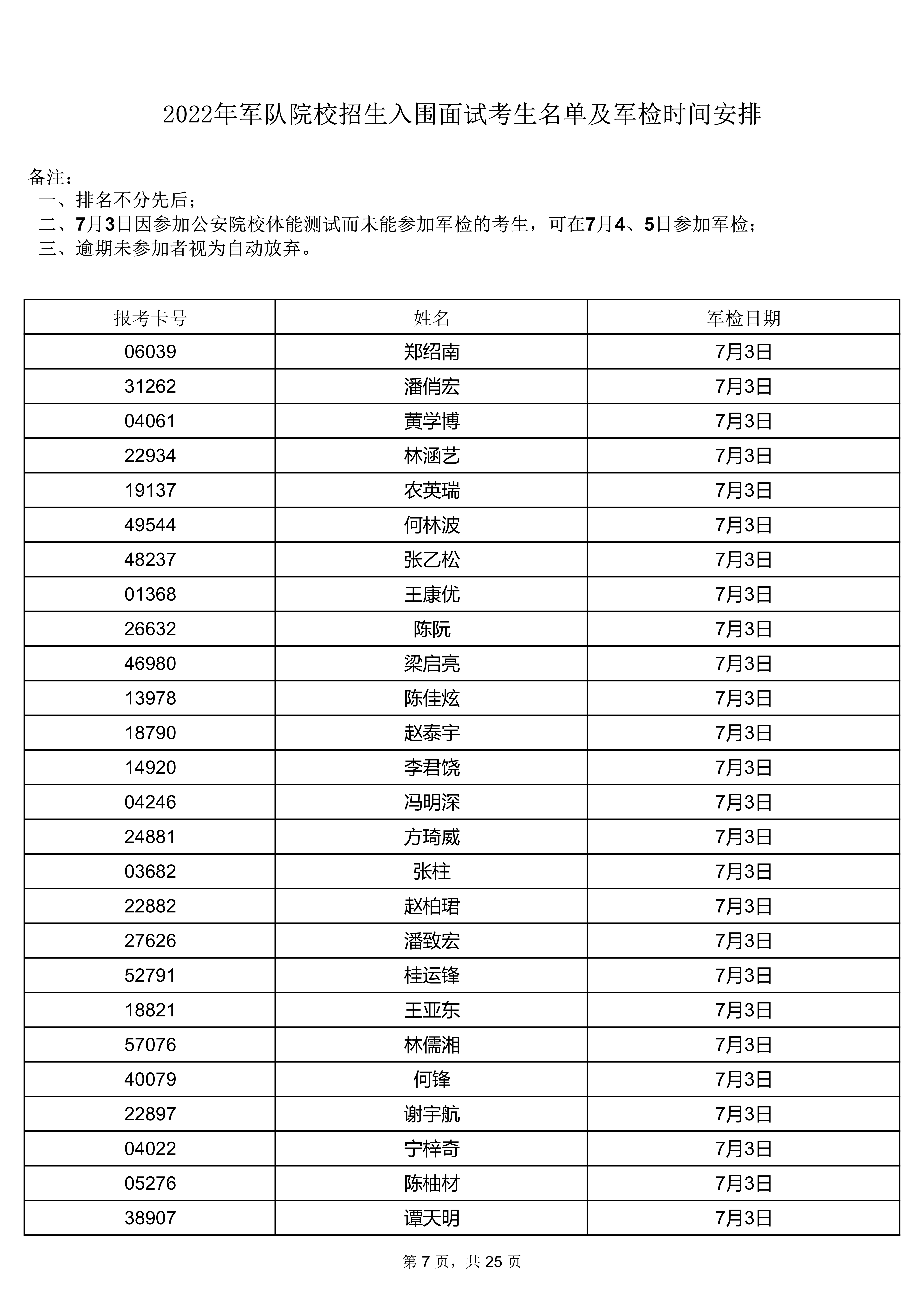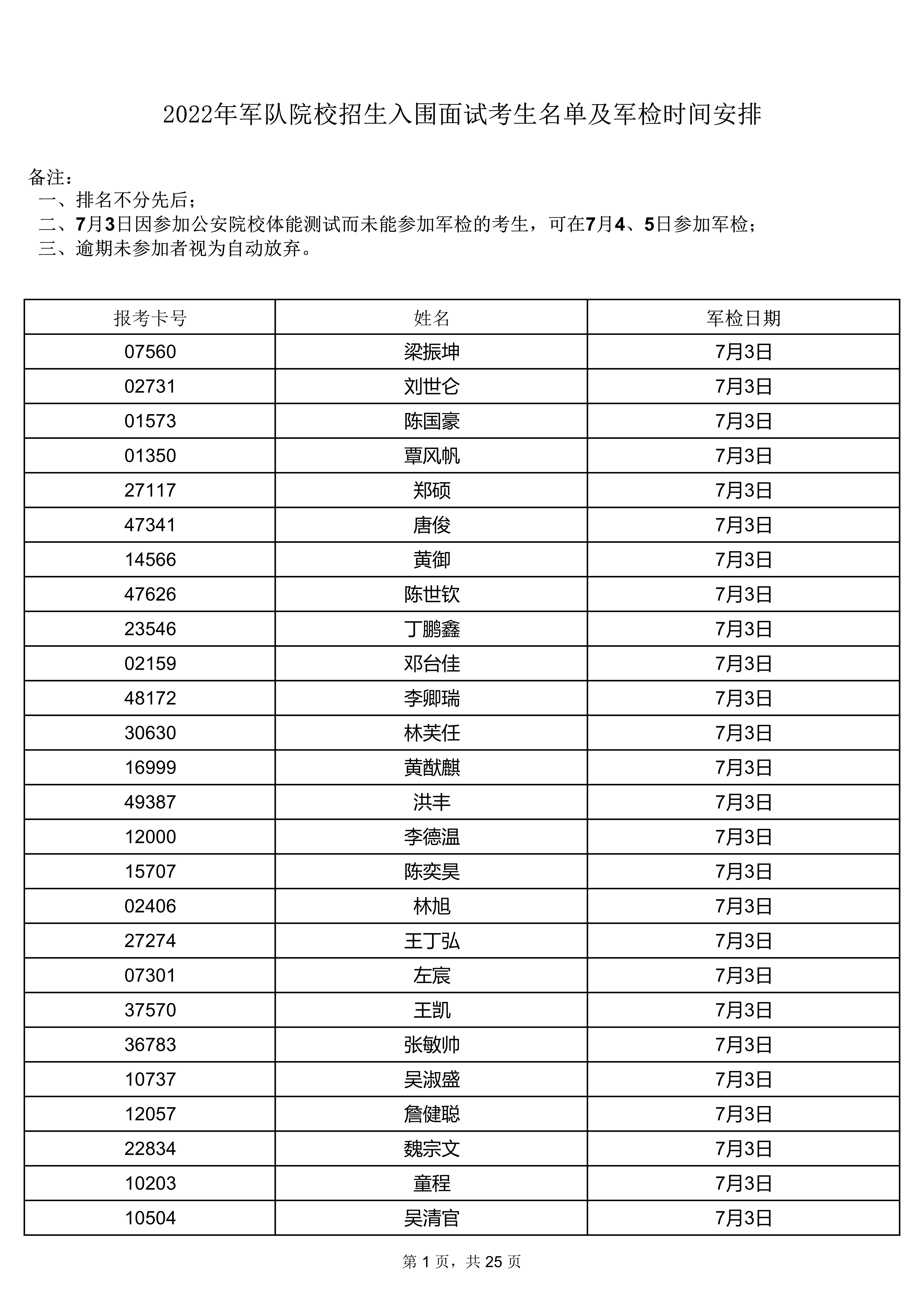 2022年軍隊(duì)院校招生入圍面試考生名單及軍檢時(shí)間安排(點(diǎn)擊查看8頁(yè)--25頁(yè))