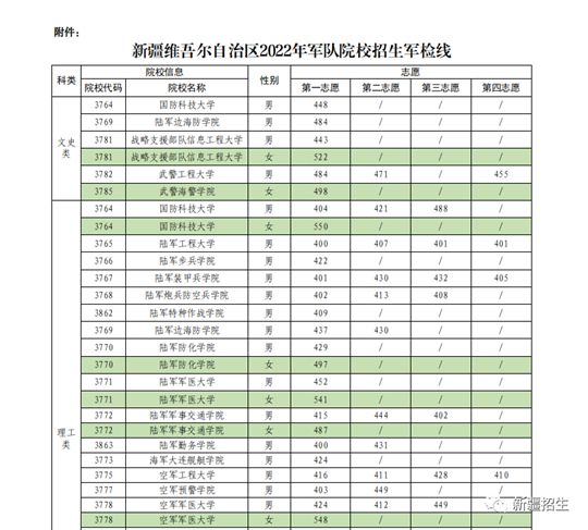 根據(jù)《關于做好2022年軍隊院校招收普通高中畢業(yè)生工作的通知》(新招委〔2022〕7號)文件規(guī)定,新疆軍區(qū)招生工作辦公室結合報考軍隊院??忌嚓P情況,按比例劃定