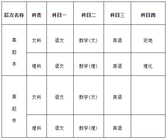 “高起本”和“高起專”考試科目