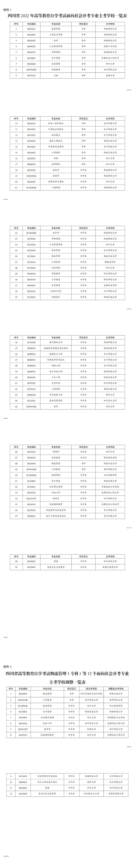 1.四川省2022年高等教育自學(xué)考試面向社會(huì)開考專業(yè)主考學(xué)校一覽表