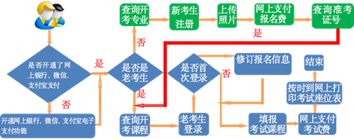 (1)新生注冊(cè)使用身份證和開(kāi)通電子支付功能的微信、支付寶、銀行卡直接登錄報(bào)名網(wǎng)址進(jìn)行注冊(cè)、報(bào)考。