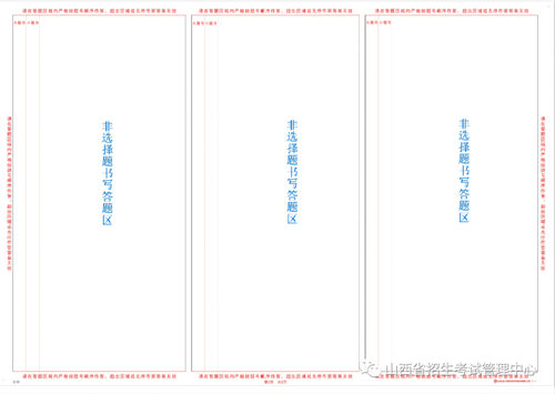 答題卡的格式:答題卡設(shè)計采用主客觀一體化設(shè)計,選擇題和非選擇題的答題區(qū)域在同一張答題卡上。答題卡分通用卡、專用卡兩種類型。大部分科目使用通用卡,少數(shù)含特殊題型的科目使用專用卡,專用卡在通用卡的基礎(chǔ)上加上特殊題型。