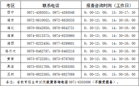 附件1:青海省2022年下半年自學(xué)考試各考區(qū)報備咨詢電話