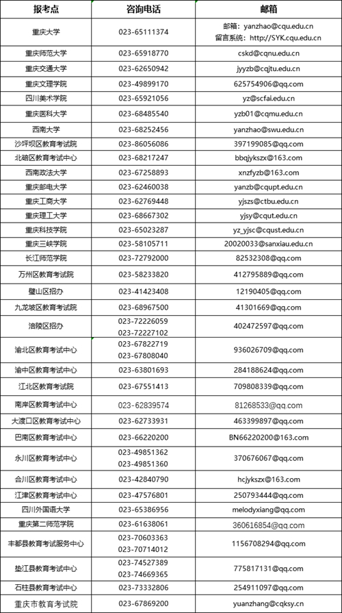 附件:重慶市2023年研招考試咨詢電話和郵箱